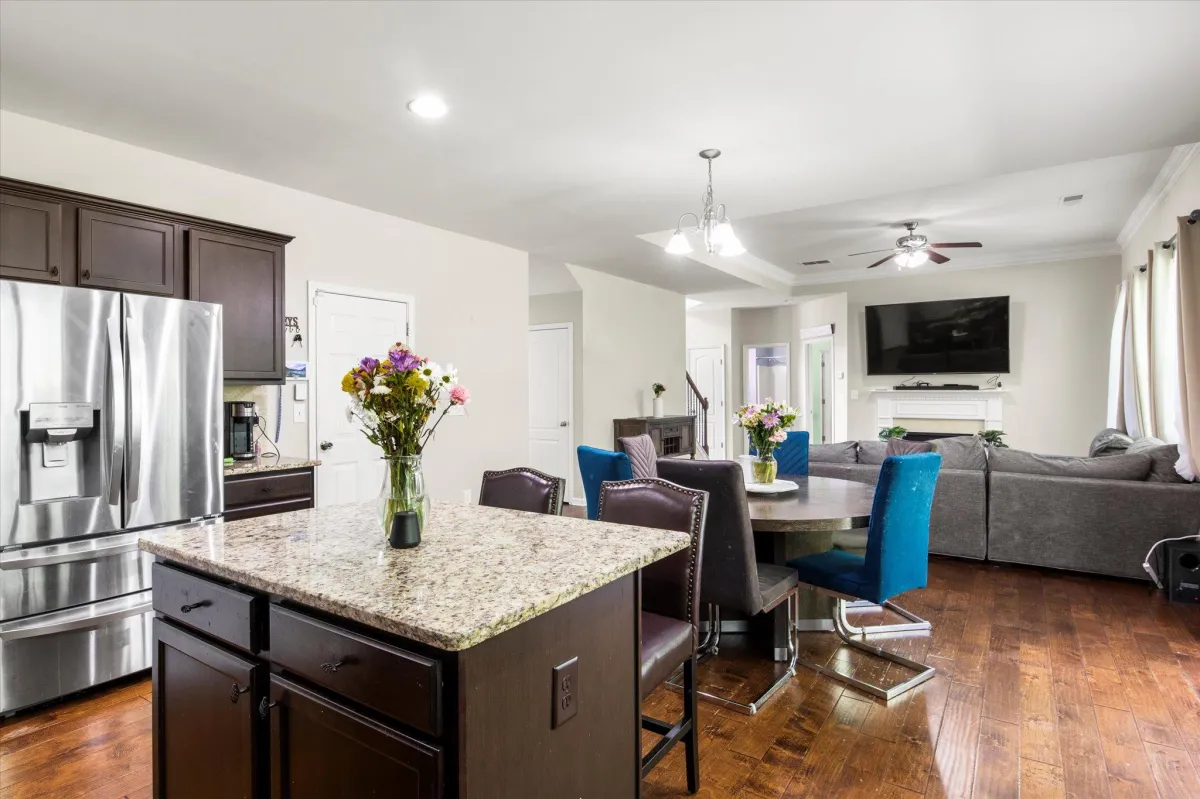 The heart of this home lies in its chef-style kitchen, where culinary aspirations come to life. Featuring top-of-the-line appliances, abundant counter space, and stylish cabinetry, this kitchen is a dream for any cooking enthusiast.